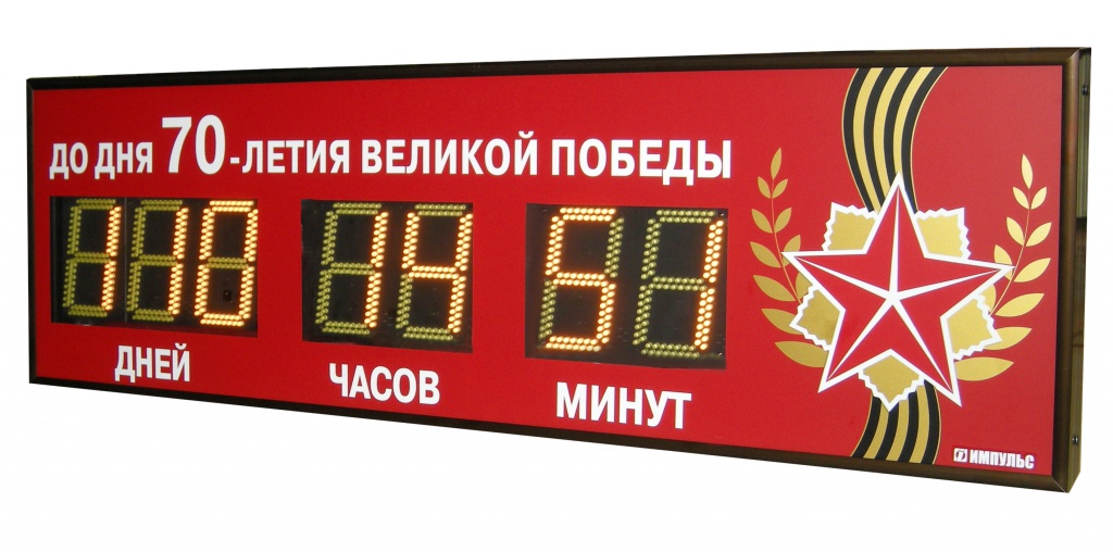 Табло представляет собой автоматический счетчик времени, отображающий время, оставшееся до наступления Дня Победы (обратный счет времени).