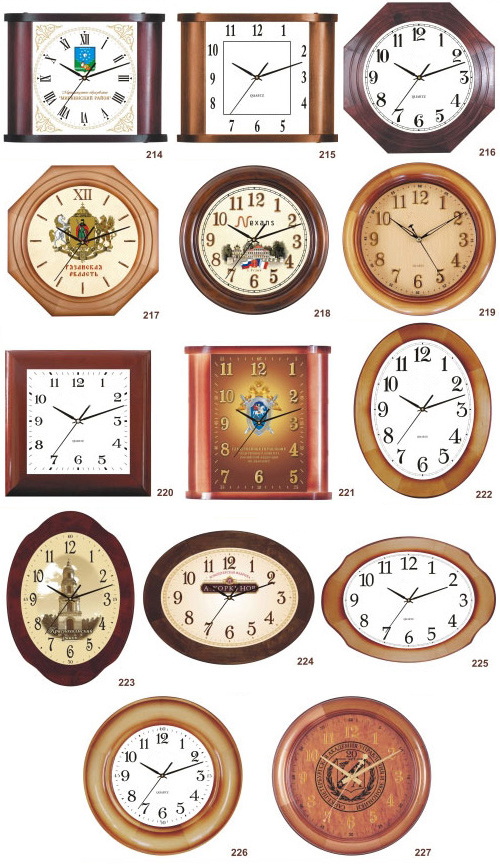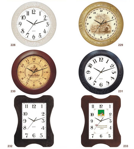 Часы в деревянном корпусе – это классика жанра. Они отлично смотрятся в любом дизайне, за исключением современных стилей техно и хай-тек, однако и здесь они способны немного оживить обстановку, если их правильно подобрать. Сегодня деревянные часы, выполненные на заказ, являются отличным подарком на любом мероприятии. Особенно если на них изображен логотип или просто пожелание. Человек каждый раз будет вспоминать о вас, когда посмотрит на эти часы. Возможности использования. Деревянные хронометры можно использовать как подарок или просто как украшение в комнате, которое придаст уюта и солидности. Однако кроме этого такие часы являются отличной рекламной площадкой. Если часы в деревянном корпусе подарить на презентации, то есть довольно большая вероятность, если они сделаны стильно и ненавязчиво, что они найдут свое место на стене у того кому их подарили. После этого они долгие годы будут делать узнаваемым логотип подарившего. Особенности конструкции деревянных хронометров. Конструкция, которую имеют деревянные хронометры, может быть самой разнообразной, от старинной маятниковой до ультрасовременной. Каждый заказчик может самостоятельно выбрать как конструкцию и дизайн, которые будут использоваться в деревянных часах, так и сам вид дерева, из которого они будут изготовлены. Заказав часы у нашей компании, вы получаете гарантию качества и долговечности, ведь мы уже не первый год занимаемся производством часов разной конструкции и направленности. Наша продукция всегда имеет хорошее качество и долговечность.