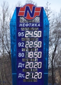 Каждое АЗС табло «Электроника» имеет законченную конструкцию – индивидуальный герметичный корпус, декоративный профиль, акриловое стекло-светофильтр, управляющую электронику (контроллер или регистр управления), источник питания, необходимые кабеля данных для объединения всех табло в единую цифровую сеть.