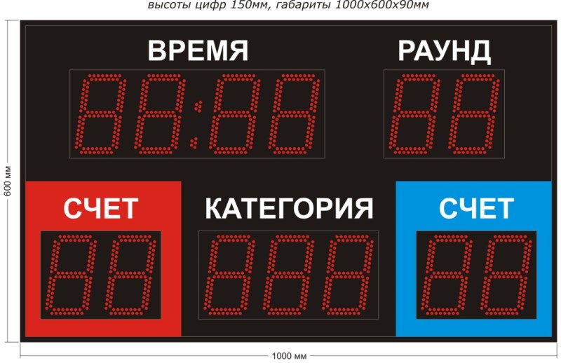 Табло для бокса рассчитано на работу в условиях сухого помещения, при температуре не ниже нуля и не выше пятидесяти градусов по Цельсию. Требования к электросети – 220 В и 50Гц, при этом длина шнура питания обычно составляет полтора метра.