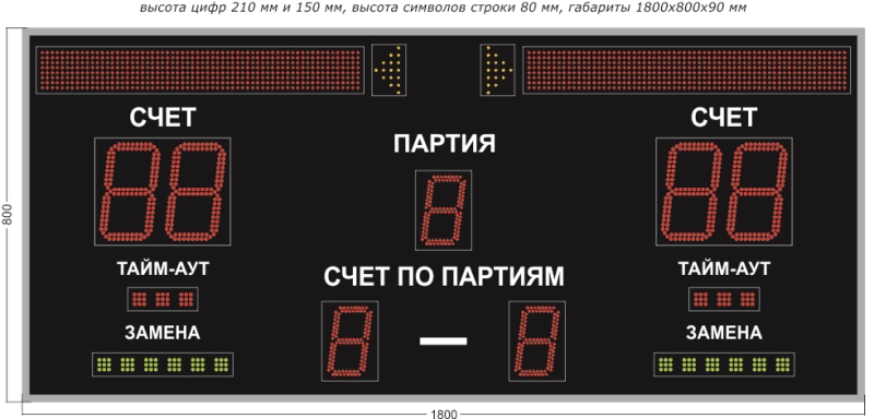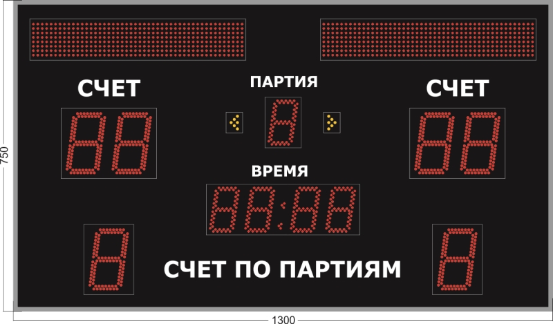 Также, при желании клиента, существует возможность изготовления табло с изменением параметров или же добавлением новых модификаций. В частности, можно заказать добавление характеристик ведения игры, подачу звукового сигнала и прочие дополнительные возможности.